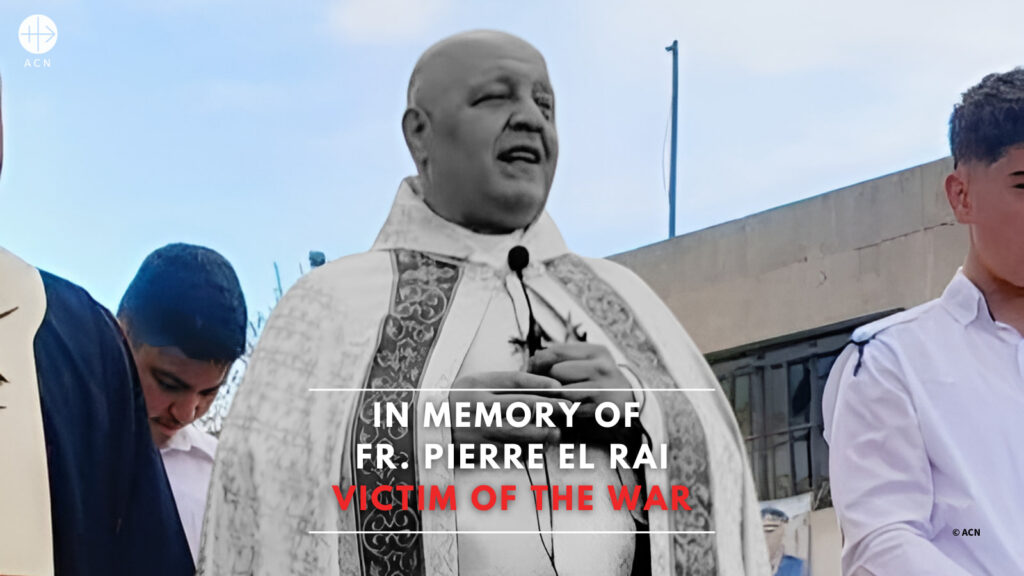 Pontifical Charity Aid to the Church in Need (ACN) calls for prayers for Fr. Pierre El Rai, a Maronite priest from the Maronite Diocese of Tyre and a project partner of the charity in southern Lebanon, who was killed amid the current escalation of violence in the region.
