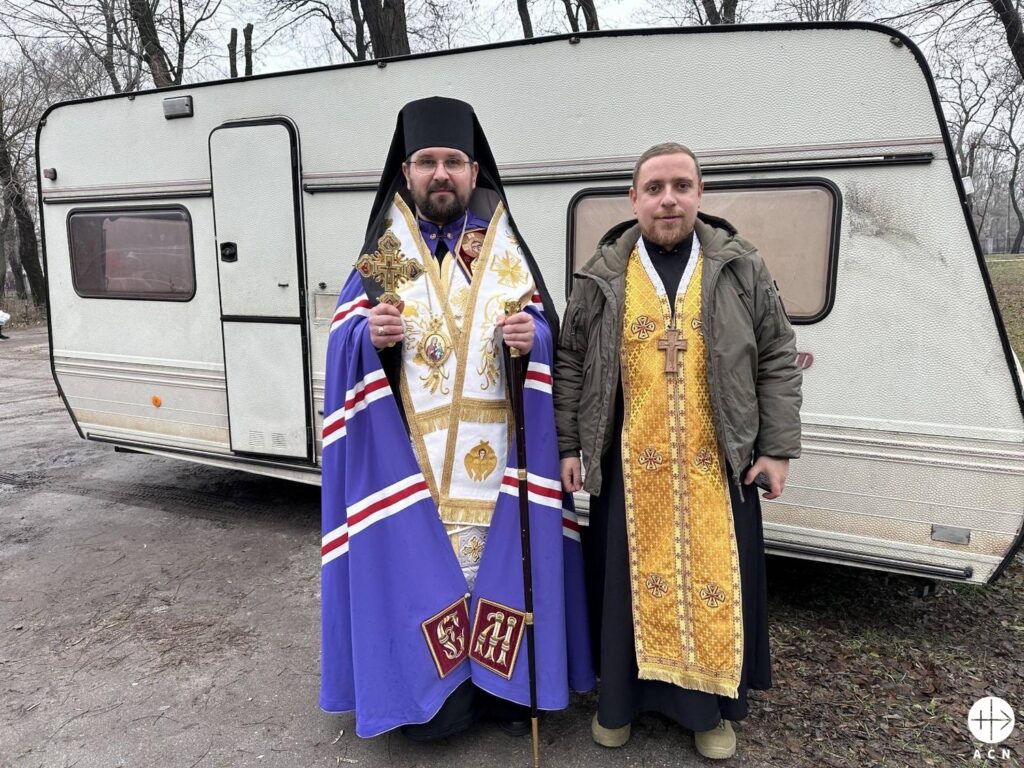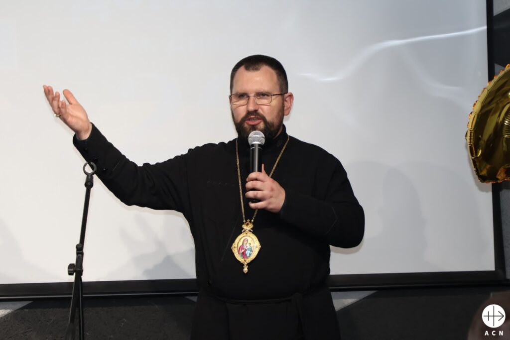 At 45, the Ukrainian bishop, Maksym Ryabukha, is one of the youngest bishops in the world. He is also in charge of one of the most delicate territories in the world, east-central Ukraine, covering the regions of Donetsk, Luhansk, Dnipro and Zaporizhzhia. Half of his exarchate – the eastern equivalent of a diocese – is off-limits, occupied by Russian forces, and even the cathedral is closed. He refers to himself as a “bishop on wheels,” because he is constantly on the road to be close to his flock. The bishop visited the international headquarters of Aid to the Church in Need (ACN), which has been helping to provide his priests and religious with training to help young people overcome war trauma.