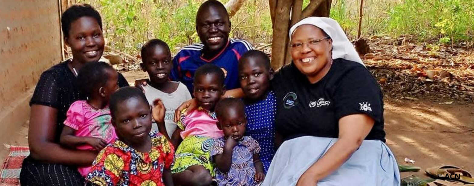Quatre prêtres Salésiens et quatre religieuses servent une population de plus de 90 000 réfugiés sud-soudanais à Palabek, en Ouganda. Entre éducation et soutien spirituel, ils ont fort à faire, mais ils peuvent compter sur l’aide de l’Aide à l’Église en Détresse (AED). (Photo de bannière : une des religieuses avec une famille du camp.) Le prêtre …