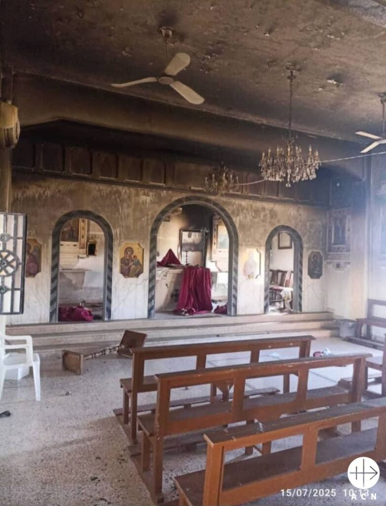 A serious incident has been reported in the village of Al-Sura, in the Suwayda region of southern Syria. According to several local sources linked to ACN, the Greek Melkite Church of St. Michael in Al-Sura was attacked and set on fire by unknown assailants. The full extent of the damage has not yet been confirmed, as access to the area is currently impossible due to ongoing tensions, but images circulating on social media confirm the attack.