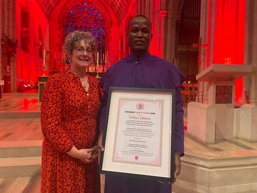 Tobias Yahaya receiving the ACN UK Red Wednesday Courage to be Christian award, St. George’s Cathedral, Southwark, London. © ACN