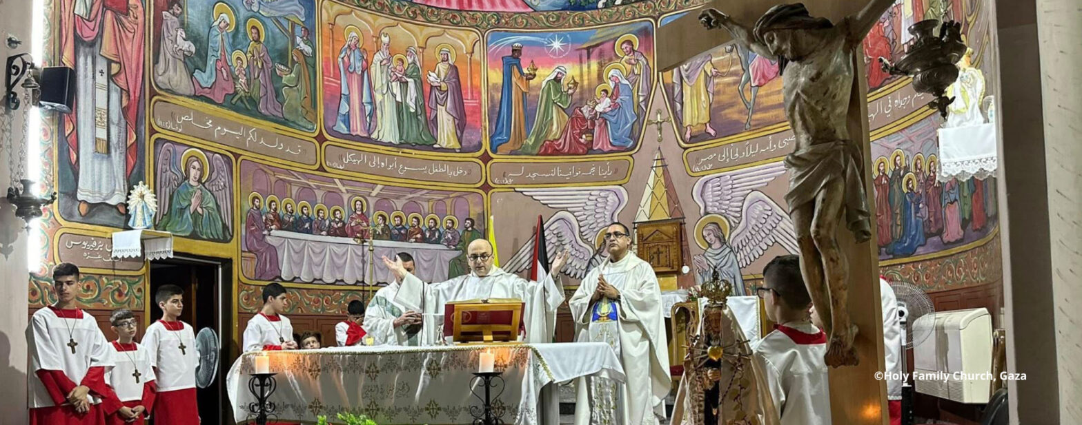 In a joint statement, the Latin Catholic and Greek Orthodox Patriarchs of Jerusalem call on both parties to end hostilities and allow families on both sides to begin to heal the wounds of war. (Photo of the banner: Already in 2024, people in Holy Family Parish were praying for peace.) Both the Catholic and the …